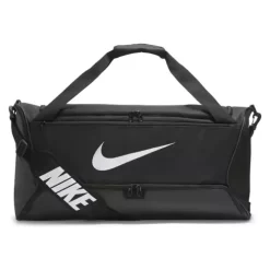 The Nike Brasilia 9.5 Training Duffel Bag is a great option for hauling your workout gear to and from the gym. Made from polyester material, the Nike Brasilia 9.5 Duffel is super durable for long-lasting use, while the coated bottom protects your gear from bumps and spills. Featuring a zippered main compartment, you’ll have plenty of room for all your gear. Plus, the zippered interior liner separates dirty shoes and sweaty clothing from the rest of your gear. Additional features like the exterior pocket and carrying handles help elevate the function of the Nike Brasilia 9.5 Training Duffel Bag.