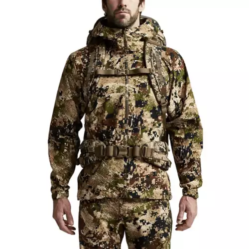 The SITKA Mountain 2700 Pack is a streamlined pack designed for big game hunters. This SITKA pack can support loads up to 45 pounds and has 2,700 cubic inches of storage space. 450-Denier polyester reinforcements on the back pockets and bottom panels stand up to rugged use, while the reinforced waist belt keeps the pack secure as you trek through the backcountry. The Mountain 2700 pack has several pockets, including an internal security pocket, a hydration sleeve, side pockets for tripods, and two vertical exterior pockets for storing spotting scopes or extra rain gear. Built to provide hunters a hard-working day pack, the SITKA Mountain 2700 Pack offers ample room for storing gear with a streamlined, functional design.